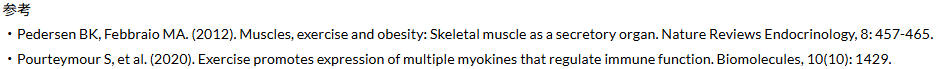 さらに、マイオカインはリンパ球の働きを調整し、感染症や自己免疫疾患への予防効果も期待されます。
